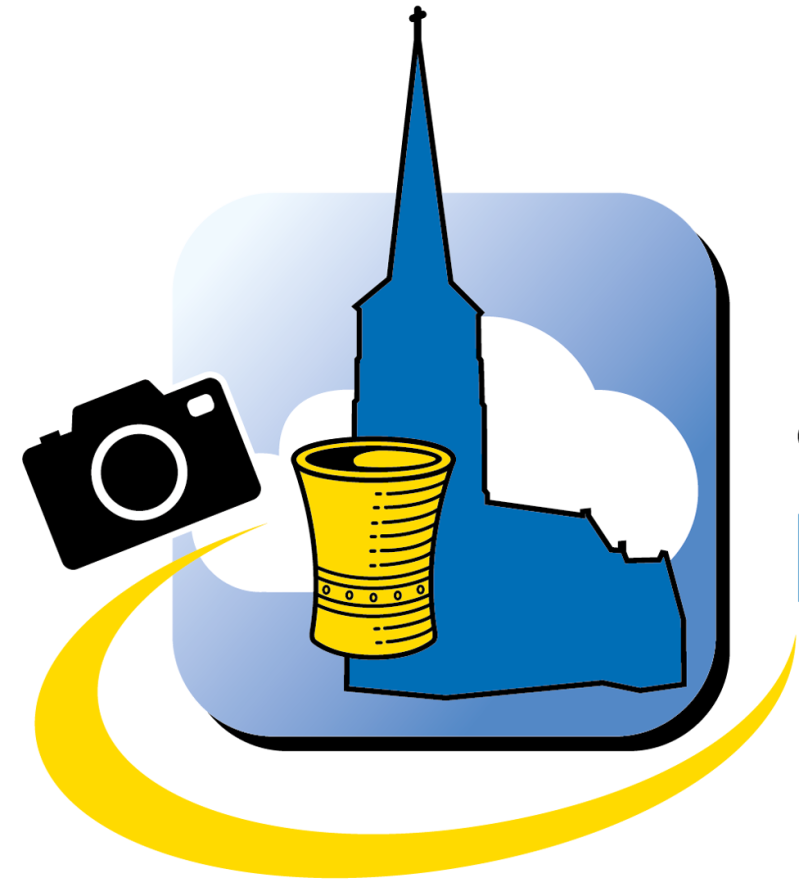 De wolk achter de kerk staat voor de ‘cloud’ waarin we de foto’s, verhalen en andere te bewaren items opslaan. Het fototoestel herinnert aan onze ontstaans-geschiedenis uit de Fotostichting Diessen, die op haar beurt is voortgekomen uit het fotoboek ‘Wat Dies… meer zij’.